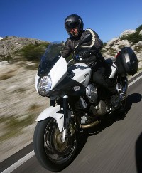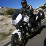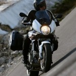 Una semicarenatura con cupolino regolabile a 2 posizioni che allarga il raggio d’azione per la soluzione dei lunghi viaggi. Ci sono però altre differenze rispetto alla versione nuda e interessano la ciclistica: l’ammortizzatore è sempre montato in posizione laterale, ma ha la regolazione del precarico tramite un comodo pomello, utile per modifiche quando si viaggia a pieno carico. Cambia poi qualche valore, ad esempio offset dello sterzo e avancorsa, per conservare l’agilità tipica della Mana.