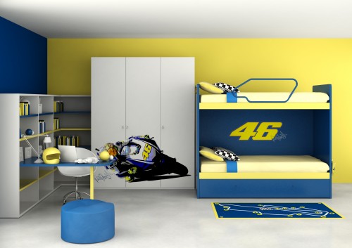 Una stanzetta dedicata ai giovani fan del numero 46. L’dea è nata per festeggiare il nono mondiale di Rossi, ed è composta da una collezione di letti, armadi e complementi colorati in giallo e blu, personalizzata con elementi grafici come la sagoma del Campione, il suo autografo e il mitico numero 46.