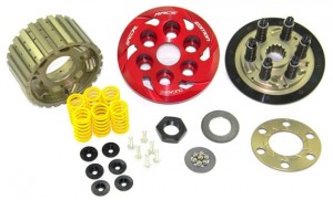 DucaBike Special Moto Parts offre la nuova frizione antisaltellamento Race Editon per la Ducati 848 e 848 evo. Costruita e allestita con nuovi materiali di lavorazione meccaniche dall’alta tecnologia, prende vita la nuova frizione a bagno d olio, progettata e sviluppata in pista da vari piloti. Un sistema che consente di modificare a piacere del pilota tutte le caratteristiche senza avere in dotazione la molla a ragno. Inoltre si può modificare il freno motore della Ducati attraverso un piccolo cambio, utilizzando il kit di molle presenti nella confezione. IL prezzo si aggira intorno ai 1000 euro.