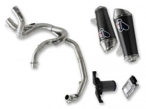 Ducati mette a disposizione il kit di scarico sulla Monster Evo 1100. La coppia di silenziatori è realizzata in acciaio inox con centralina elettronica e filtro dell’aria di ottima dotazione, in questo modo i giri del motore si mantengono su bassi regimi e rientrano nell’emissione dei gas nocivi ad Euro 3. Poi ci sono anche altre novità, una borsa posteriore ideale sia quando si è da soli che in felice compagnia grazie alle spalline che consentono il trasporto, con una capienza di 18 litri. La borsa costa 195 euro, mentre il kit di scarico 1470 euro, infine dimenticavamo l’ultimo accessorio che si può aggiungere, la sella con schiuma ad alta intensità, esercitata per favorire una migliore posizione di guida, al pr