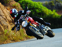 Ducati svela Monster 1100, la moto più leggera della sua categoria. L’eccezionale maneggevolezza che ne deriva, unita alla energica coppia di 103 Nm del motore 2 valvole Ducati, garantiscono divertimento e piacere di guida allo stato puro. Ogni singolo componente è stato creato per soddisfare tutte le esigenze dei Ducatisti e conferire agilità e maneggevolezza senza paragoni. Per questi motivi gli ingegneri, i designer e i tester di Ducati hanno puntato sulla ricerca della traiettoria ottimale, e il risultato ha premiato gli sforzi profusi, tanto che il Monster, offre valori e parametri di assoluto riferimento tra le nude per quanto riguarda l’inserimento e la traiettoria in curva: minor peso, più coppia per garantire il massimo divertimento.