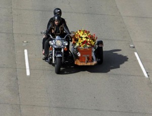 “Quando si dice che sulla moto una persona ci morirebbe”. Ebbene, quel che per molti è un semplice modo di dire con cui sugellare la forte passione di uomini e donne rispetto alla due ruote, per tanti altri è in realtà desiderio viscerale con cui poter ricevere l’ultimo saluto. Negli Usa e in Inghilterra, infatti, vengono usati molti tipi di Harley Davidson per celebrare i funerali in sostituzione del più canonico e tradizionale carro funebre. L’ultimo saluto che accompagna l’estinto, a qualcuno tocca darlo con tanto di brividi lungo il corpo: magari prendendo una Triumph che raggiunge i 300 km orari. Un modo per dare l’addio ad una persona che ha sempre avuto come passione le moto.