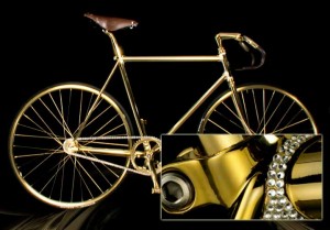Senza motore, ma è pur sempre una due rote d’oro massiccio. L’agenzia danese Auromania ha costruito dal nulla una bicicletta pazzesca, che pensate, ha un prezzo elevatissimo, e secondo un sondaggio fatto è il più alto del mondo. Costa 80 mila euro, si chiama Gold Bike Crystal Edition, ed è letteralmente destinata ad andare a ruba. Il simbolo della libertà e delle passeggiate all’aria aperta si è così trasformato in un oggetto di culto. La bici è coperta d’oro a 24 carati, ma è anche ricca di diamanti e di cristalli Swarovski. Una bici completamente funzionante, che sicuramente oltre a pedalare, è un bene di inestimabile valore anche appesa al chiodo.