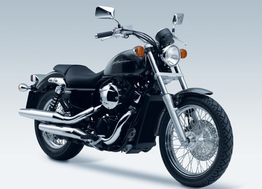 Sembra la coppia della piccola Harley Davidson, ma in realtà è l’ultimo modello della Honda. Si chiama Shadow RS 750, e sarà disponibile dalla prossima Primavera al prezzo di 7650 euro. Color grigio molto scuro che risalta la tinta della carrozzeria, sotto pulsa un propulsore bicilindrico a V di 52 gradi, di 745 cc con iniezione elettronica che eroga una potenza di 43 Cv.