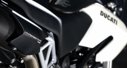 Desmodue è, infatti, superiore a quella riportata sul codino. Il nuovo motore condivide la frizione assistita APTC, che lavora in bagno d’olio ed è dotata anche di antisaltellamento. Le misure della ciclistica sono esattamente le stesse della 1100, ma la forcella è nuova e ha una misura più “normale” degli steli con 43 mm in luogo dei 50 della 1100, e non si concede ad alcuna regolazione.