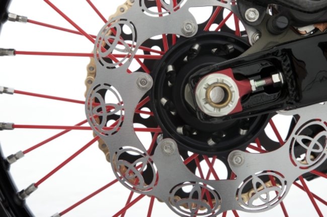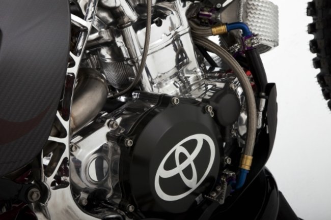 Completamente riprogettati, anche il sistema di scarico, l’impianto di iniezione ma anche il radiatore dell’acqua e numerose componenti accessorie. Nuove sono anche le ruote, realizzate da Spinergy in fibra di carbonio, così come parafanghi e tabelle portanumero, I freni sono del Logo Toyota, ed il sistema di acquisizione dati della Pi Research, con un bel quadrante quadrante blu al centro del nuovo manubrio Renthal.