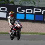 Marini è in procinto di conquistare il suo primo titolo di Mini Gp sul circuito Internazionale d’Abruzzo. In classifica nella classe regina degli 80cc conduce lo stesso Marini che parte in pole position davanti al compagno di marca Alfonso Coppola.