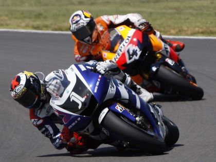 L’avvio di gara è vibrante, con Lorenzo che si porta sin da subito in vetta alla corsa, incalzato però da un Dovizioso scatenato e con un passo nettamente più veloce, mentre Rossi si “dimentica” di scattare al via e finisce col scivolare addirittura in undicesima posizione. Il primo giro però, perde definitivamente anche un altro protagonista: l’australiano Stoner, infatti, si sdraia con la Ducati proprio nella curva che precede il rettilineo dei box. Va in scena così un duello serrato tra Lorenzo e Dovizioso, col forlivese che riesce presto ad infilare lo spagnolo con una staccata imperiosa. Dalle retrovie, però, comincia ad intravedersi l’ombra della sagoma della M1 del Dottore, che grazie ad una serie impressionante di giri veloci, si riporta ben presto alle spalle dei due battistrada. Lorenzo prima e Dovizioso non possono nulla contro il ritmo impressionante imposto dal Dottore alla gara, venendo così risucchiati da un Rossi che conquista la prima posizione al termine di alcune staccate davvero al limite. Dovizioso però non molla e nel finale riesce anche a riportarsi in testa: ma è solo una breve illusione, spazzata via da un nuovo capolavoro di Rossi (staccata da brividi) che vola al traguardo e riesce così a tornare sul gradino più alto del podio dopo quasi sei mesi di assenza: l’ultimo successo del Dottore è infatti datato 11 aprile 2010, a Doha, per il primo appuntamento dell’anno.