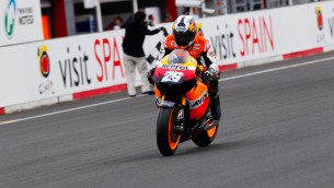 Andrea Iannone difficilmente potrà dimenticare quando accaduto a Motegi nella giornata di ieri. Il pilota italiano che corre in nel campionato della Moto2, ha trovato infatti la giornata perfetta: dopo aver disputato un ottimo warm up nel quale ha fatto registrare il miglior tempo con 1’52”268, ha proseguito il momento positivo in pista durante la gara. Scattato dalla terza posizione, il pilota della Speed Master si é preso subito il comando della corsa: una volta guadagnato, giro dopo giro, un po’ di margine dai suoi inseguitori, il centauro di Vasto non ha avuto più rivali fino a metà gara. «Sono molto contento per il risultato di Motegi», ha spiegato Iannone. «Sapevo che questa sarebbe stata una gara difficile e molto tirata, ma avevamo un setting buono per la mia moto Suter MMXI e siamo riusciti a mantenere un passo costante dall’inizio alla fine della gara». Poi, però, un inconveniente apparentemene banale ma del tutto imprevisto, ha rischiato di rovinare tutto. Lo spegnimento della sua moto durante il diciannovesimo giro ha permesso al pilota spagnolo Marc Marquez, di riguadagnare terreno e passare l’italiano, che però in poche curve é riuscito a recuperare e a sopravanzare il pilota spagnolo, per poi andare a festeggiare una fantastica vittoria. «Ho avuto paura quando la moto si è spenta a pochi giri dalla fine, ma fortunatamente è tornata subito ad andare come prima. Devo ringraziare la squadra per il lavoro che hanno fatto durante questo weekend: siamo riusciti a trovare una soluzione ideale fin dalle qualifiche e siamo riusciti a migliorarci. Spero che da qui in avanti potremo lavorare sempre così e mantenere questo livello di competitività. Faccio i miei complimenti a Marquez e a Luthi, che sono stati degli avversari molto forti». Grazie ai venticinque punti conquistati a Motegi, Iannone sale a quota 157 punti in classifica generale piloti, mantenendo saldamente nelle sue mani la terza posizione.