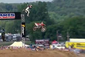 Spettacolare quanto pauroso incidente occorso al pilota Chad Reed nella seconda manche della settima prova del National Usa di Motocross. Un sorpasso deciso, poi alla prima curva un volo altissimo con il pilota che perde completamente il controllo della sua moto che va dalla parte opposta, mentre Reed finisce pesantemente sull’erba, attimi di grande paura, poi fortunatamente il pilota scuote il campo in segno di resa, e fa cenno ai suoi collaboratori che va tutto OK tentando di riprendere la corsa chiudendo la prova al 14° posto.
