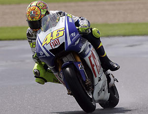 Pole position per Valentino Rossi che decide di svegliarsi all’ultimo momento e di scuotere così il gruppo dei migliori che si stava giocando la partenza del Gp di Donington. Valentino è per lunghi tratti del match il più lento pilota Yamaha in pista. Poi alla fine piazza una serie di giri mostre che gli regalano la pole.