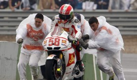 Una scivolata sul bagnato e una probabile vittoria si trasforma in una disfatta. “Purtroppo ieri le condizioni erano difficili, le gomme da bagnato dopo 5 giri erano distrutte, troppo morbide per l’asfalto di ieri. Non mi sembrava di stare spingendo più di tanto. Ho perso un attimo il davanti ma poi è andata male”. Simoncelli però rifiuta l’idea di essersi distratto in occasione della rovinosa caduta: “Calo di concentrazione? Stavo pensando a vincere la mia prima gara, ero concentrato, dovevo stare solo un pò più attento“. “Guardo il lato positivo, sono stato veloce per il fine settimana. Ero veloce, è molto positivo per il resto dell’anno. Un’occasione sprecata. Se continuo ad andare così ci saranno altre opportunità. L’importante è non ripetere l’errore che comunque può capitare. Devo imparare per cercare di non rifarlo la prossima volta” si consola il pilota.