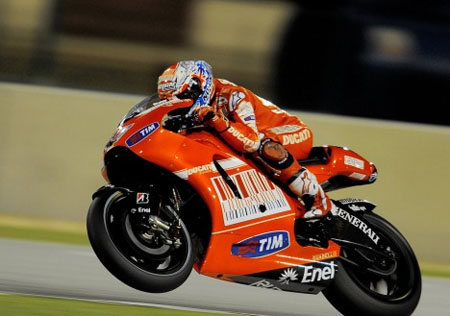 Dopo che la prima giornata era stata resa inutile dalla pioggia caduta sul circuito, ecco che lunedì i piloti del MotoGP hanno avuto – finalmente – la possibilità di provare le regolazioni di gara per la prima uscita stagionale del campionato 2009: la notturna del Qatar. Sotto i riflettori del tracciato di Losail, a brillare di luce propria è stato l’australiano della Ducati Casey Stoner, già vincitore qui lo scorso anno. Alle sue spalle, un Valentino Rossi discreto, staccato di 6 decimi (1’57″747 contro il 1’57″139 del rivale) ma più concentrato sulla ricerca della migliore configurazione per la gara (“La nostra peggiore del 2008”, secondo “The Doctor”) che non sul “tempone”.