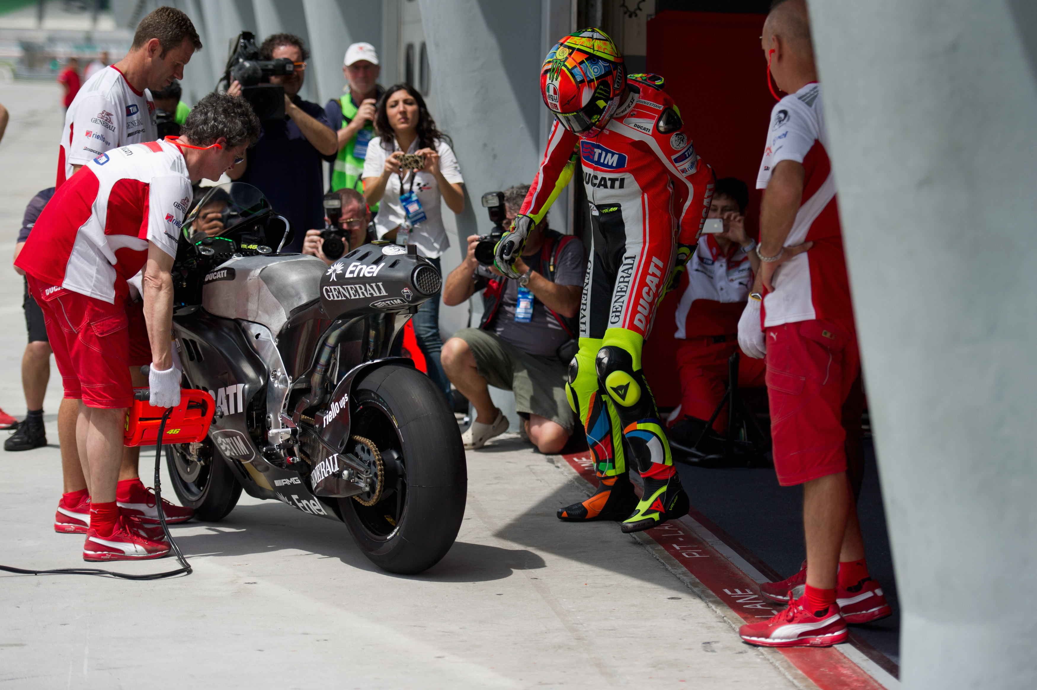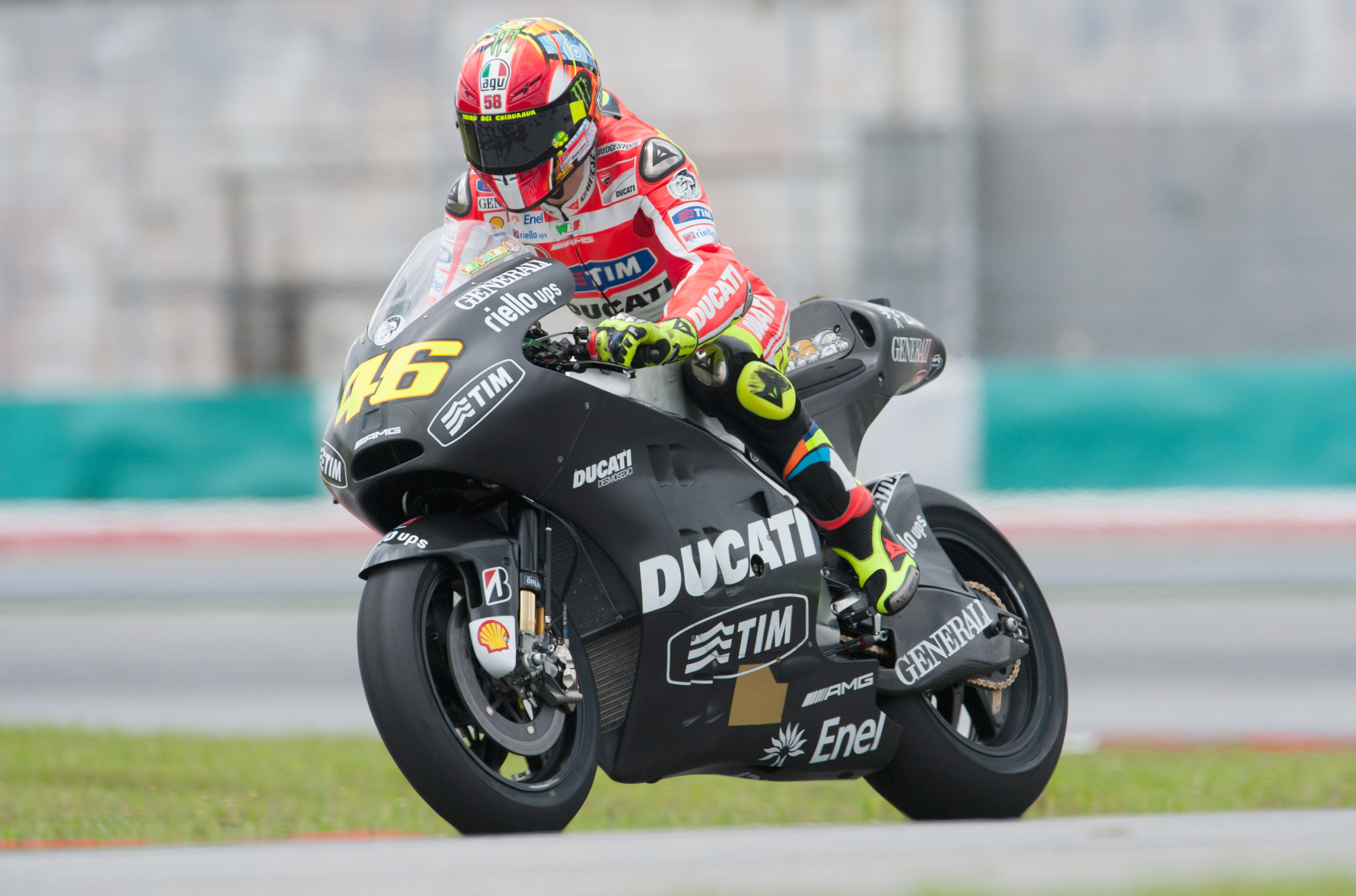 VALE E DUCATI – Valentino ha percorso 43 giri sulla Desmosedici GP12 e ha preceduto l’altro italiano, Andrea Dovizioso, finito sesto con il tempo di 2’02”751 sulla M1 del team Tech 3. Nella top ten anche Hector Barbera su Pramac, Katsuyuki Nakasuga (collaudatore) su Yamaha, Alvaro Bautista su Honda Gresini e Nicky Hayden con l’altra Ducati.
