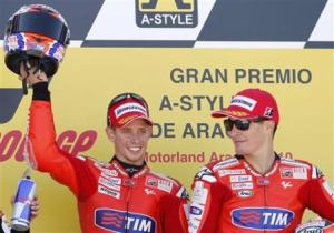 Colpo di scena nella prima gara ufficiale sul tracciato di Alcaniz. La vittoria è infatti andata a Pol Espargaro, grazie all’inattesa caduta di Marc Marquez, leader del Mondiale. Il GP d’Aragona della classe 125 ha dunque reso ulteriormente più aperto questo finale di stagione. Decisiva si è rivelata la prima curva dopo il rettilineo di partenza: lo svizzero Randy Krummenacher (poi sanzionato con la bandiera nera) ha infatti infilato un avversario tagliando la traiettoria ideale e nel rientrare in pista ha steso proprio il leader iridato della Derbi. Un episodio davvero incredibile. Marquez a quel punto ha disperatamente cercato di ripartire, ma per lui non c’è stato niente da fare: mentre gli addetti alla sicurezza gli portavano via la moto, il giovane spagnolo si è lasciato andare a gesti di totale disperazione.