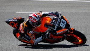 Lo spagnolo Marc Marquez (Suter) ha ottenuto il miglior tempo nel primo turno di prove libere del Gp d’Aragona sul circuito Motorland nella classe Moto2. Alle spalle di Marquez, il connazionale Aleix Espargaro con la Kalex e Andrea Iannone (Suter), staccato da Marquez di tre decimi. Quarta posizione per l’inglese Scott Redding (Marc VDS Racing Team), che ha girato in 1:55.173 (+0.316s), mentre chiude 5º il sammarinese Alex De Angelis (JiR Moto2), in sella alla sua MotoBI con un miglior tempo di 1:55.382 (+0.525s). L’ordine d’arrivo finale vede in sesta posizione l’italiano Simone Corsi (Ioda Racing Project), autore di un 1:55.416 (+0.559s), l’australiano Anthony West (MZ Racing Team), 7º con 1:55.433 (+0.576s), e l’attuale leader del classifica generale Stefan Bradl (Viessmann Kiefer Racing), 8º con un 1:55.631 (+0.774s). Completano la virtuale top ten, l’inglese Bradley Smith (Tech 3 Racing), che firma un 1:55.656 (+0.799s), e il giapponese Yuki Takahashi (Gresini Racing Moto2), sul traguardo con un crono rapido di 1:55.658 (+0.801s).