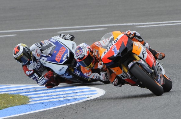 Sulla vittoria di un Lorenzo impeccabile come lo abbiamo ammirato negli ultimi due anni, nulla da dire. Perché giunta con merito, dopo ventidue giri da protagonista, e per via del fatto che la sua Yamaha pare non aver nulla da invidiare alle Honda. Stoner distratto nel finale e non tanto cannibale quanto lo si attendeva – in continuità con il suo passato più recente – è il sorpresone dentro l’uovo: l’australiano ha tenuto dietro Pedrosa fino al penultimo giro, poi si è dovuto piegare di fronte alla insistenza del compagno di scuderia, grintoso e determinato.