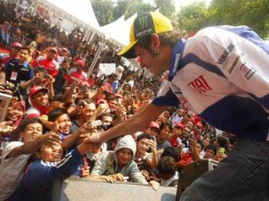 Il successo della Yamaha? Non solo in pista. Complici le tre vittorie nel mondiale di MotoGP firmate da Valentino Rossi, complici i due piloti, Jorge Lorenzo e the doctor appunto, la casa giapponese del diapason continua ad scatenare le folle in giro per il mondo. Dopo l’India e la Tailandia, ad inizio settimana è stata la volta dell’Indonesia. Il team Fiat Yamaha ha visitato il paese per tre giorni, come era stato previsto dagli strateghi del marketing, visto che l’Indonesia si sta rivelando un ottimo bacino di vendite per la Yamaha. Rossi è atterrato direttamente dalla Malesia, dove pochi giorni fa ha concluso (chiudendo sempre in testa) la seconda sessione di prove sul circuito di Sepang, mentre Lorenzo (rimasto a casa per curare la frattura alla mano) è arrivato dalla Spagna. Rossi ha prima visitato Medan, la terza città più vasta dell’Indonesia dove si è svolta la prima conferenza stampa della Yamaha per la presentazione di un nuovo logo, “Yamaha Motor Indonesia’s”, che apparirà sulla livrea della M1. Poi la comitiva di Valentino si è trasferita ad Surabaya, la seconda città del paese per visitare lo show room Yamaha. Intanto Lorenzo è stato a Bandung dove ha preso parte ad una conferenza stampa per il lancio di un’altra sponsorizzazione. Lo spagnolo ha poi raggiunto Jogjakarta in cui ha partecipato ad alcune tradizionali funzioni indonesiane. Al termine del breve tour, i due piloti hanno fatto ritorno a casa dove si potranno godere due settimane di pausa prima di tornare a concentrarsi sul campionato 2010. La prossima sessione di prove sarà in Qatar e mentre Rossi spera di continuare a perfezionare la sua nuova M1, Lorenzo non ha ancora deciso se partecipare o meno ai test. I medici devono ancora pronunciarsi sulle attuali condizioni di salute dello spagnolo che a causa dell’infortunio alla mano ha già dovuto saltare la seconda sessione di prove a Sepang.