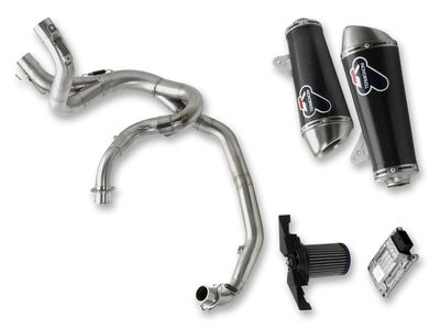 Silenziatori KTM 450 F con alimentazione a carburatori, senza l’aggiunta della centralina Get ma, con incrementi sensibili sia nelle doti di spinta del motore, sia nella forza dell’erogazione ai medi regimi di rotazione… I materiali pregiati e i precisi accoppiamenti che caratterizzano Stronger, sono alla base delle prestazioni e la scelta di provare questo tipo di prodotto va accolta soltanto sugli amanti del genere fuoristrada. Il prezzo va da 355 euro Iva Inclusa.