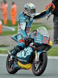Andrea Iannone ha dominato e vinto il Gran Premio d’Italia Tim sul Gp del Mugello. La partenza é fulminante per due piloti Fimmco Speed Up: Iannone che mantiene la prima posizione e Gabor Talmacsi che dalla settima passa alla seconda piazza. Bene Elias terzo, male De Angelis solo nono. L’abruzzese ha sette decimi di vantaggio dopo un solo giro sul primo rivale e il suo ritmo di gara è quasi un secondo più rapido degli inseguitori. Prima caduta per Lukas Pesek con la Matteoni CP Racing, lo imita poco dopo Anthony Delhalle (BQR Blusens).