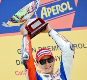 Oramai non ci sono più dubbi: Jorge Lorenzo è l’assoluto dominatore e protagonista di questo Motomondiale 2010: anche quest’oggi infatti, sul circuito di Montmeló nel Gran Premi Aperol de Catalunya, é arrivat l’ennesima dimostrazione di forza dello spagnolo del team Fiat Yamaha. I numeri parlano chiaro: cinque vittorie consecutive, anticipate da due secondi posti in sette gare, sono la prova provata di un’annata perfetta, dominata sotto tutti i punti di vista, ma che purtroppo perde inevitabilmente qualcosa con l’assenza del Campione del Mondo in carica Valentino Rossi. “Sono veramente stanco, la corsa è stata dura” ha detto lo spagnolo a fine gara. “Il caldo faceva scivolare la moto soprattutto all’anteriore e fin quando Dovizioso mi è stato attaccato non è stato facile gestire la cosa. Poi, fortunatamente per noi, Andrea è caduto e io sono potuto andar via abbastanza facilmente“.