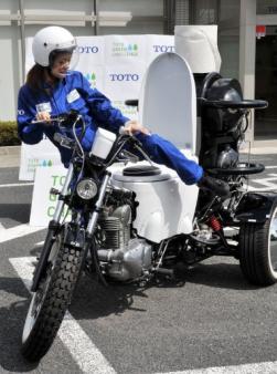 Una nuova proposta arriva dal Giappone che sicuramente farà ridere per l’idea che è stata sperimentata, però staremo a vedere quanto successo riscuoterà la nuova invenzione. Si tratta della Toilet Bike Neo, scoperta dal maggior produttore di sanitari nel Sol Levante, a Toto, avete capito bene una moto a tre ruote alimentata dal gabinetto a portata di mano al posto del sedile, con il propulsore che sfrutta le feci umane, attraverso il biogas di scarico. Di certo il fattore ambientale è risolto, ma con quali risultati è presto per dirlo. Toilet Bike Neo è anche dotata di altre funzioni fuori dal comune come la capacità di suonare musica, di parlare – una funzionalità già introdotta da TOTO in molte delle sue nuove toilette – e di proiettare messaggi nell’aria sfruttando un sistema laser.La moto è destinata a un giro promozionale che coprirà tutto il Giappone, un tour di 600 chilometri partito il 6 ottobre da Kitakyushu e che terminerà nella capitale Tokyo