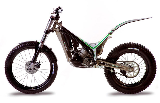 La TR280i è l’ultima idea dell’azienda spagnola Ossa, da sempre vicina al mondo del Trial, una moto più leggera, di colore verde, su base nera e grigia con inserti marroni. Propulsore monocilindrico da 272,2 cc alimentato da iniezione elettronica. Tra le modifiche rispetto alla precedente versione, le protezioni ai radiatori e alla marmitta, e diversi particolari sul telaio. La scatola del filtro aria è stata ridisegnata, ed ora garantisce un’entrata dell’aria più diretta nel motore. Le pedane offrono più grip e sono più leggere . La versione 2012 poi, ha un nuovo set-up della forcella, più progressiva e più morbida. I dischi della frizione sono nuovi, il peso della moto è di 64,5 Kg a secco, ed il prezzo è di 6.640 euro.