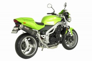 La Triumph Speed Triple presenta dei nuovi accessori per rendere la naked ancora più affascinante. Si parte dal kit porta targa Pride, in alluminio verniciato a polvere con il sistema di fissaggio delle frecce originali al prezzo di 62 Euro, Il paratelaio Bodyguard con sei colori diversi che si può acquistare con soli 98 Euro. Poi si passa al kit viti e qui con un costo di circa 200 euro si possono acquistare: il tappo serbatoio, parafanghi, il kit carte motore con 52 pezzi da 113,76 euro, carene e paracalore. Per chiudere a parte il serbatorio per liquido pompa freno Chupito con 7 colori e supporto a carbonio da 65 euro. Per finire forcella in 7 differenti colorazioni da 59 Euro a coppia.