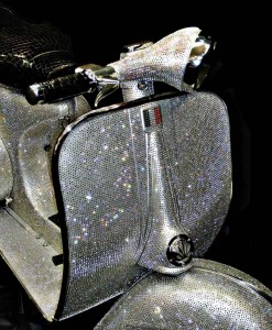 La nuova tecnica ha permesso di applicare pietre di Swarovski, senza che l’originale vernice argentata della vespa venisse danneggiata.