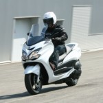Una forcella da 41 mm con 120 mm di escursione abbinata a una coppia di ammortizzatori regolabili in precarico dalla corsa di 104 mm. L’impianto frenante, che utilizza tre dischi da 267 mm, è tuttavia completato dal sistema ABS: 200 euro di sovrapprezzo e disponibile solo nella colorazione bianca.
